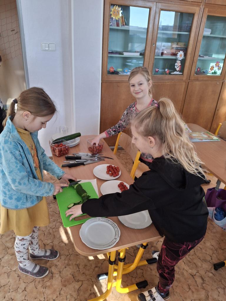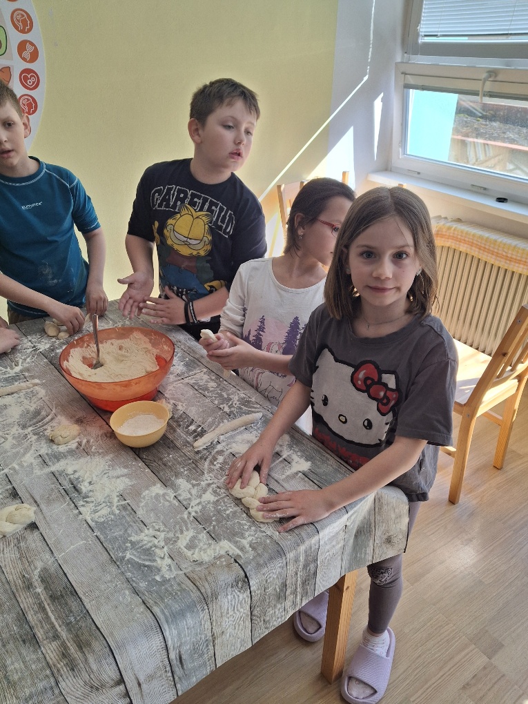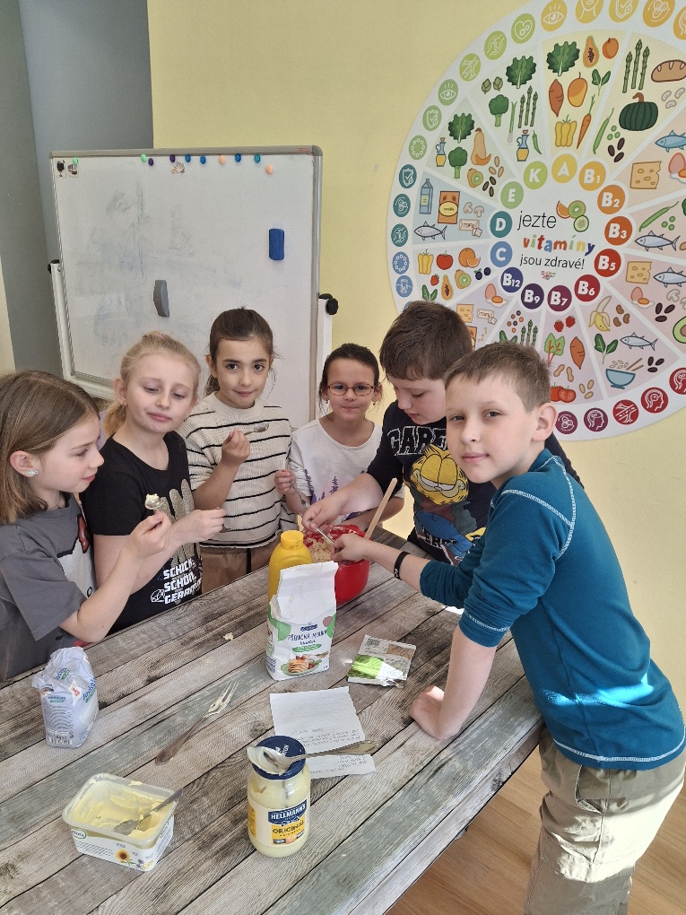 Paní učitelka Ivana Stískalová naučila své žáky jak na svačinku. Nejen, že si udělali pomazánky, ale upekli i výborné housky! :)